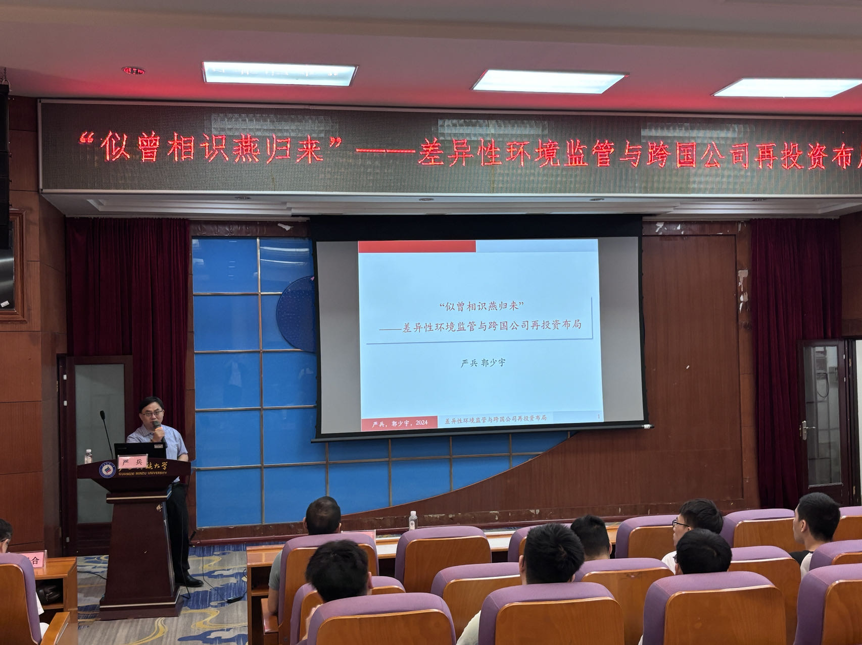 2024年6月27日上午,经济学院开展了主题为《“似曾相识燕归来”——差异性环境监管与跨国公司再投资布局》的专题讲座。本次讲座由南开大学经济学院副院长、国际经济研究所所长、博士生导师严兵教授主讲,fun88乐天使胡超院长主持,2023级部分研究生参加。
