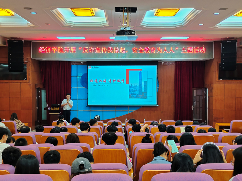 2024年9月27日上午,经济学院开展了主题为《反诈宣传我做起,安全教育为人人》的宣讲会。本次宣讲会由中国银行广西分行经理主讲,经济学院2024级全体研究生参加。