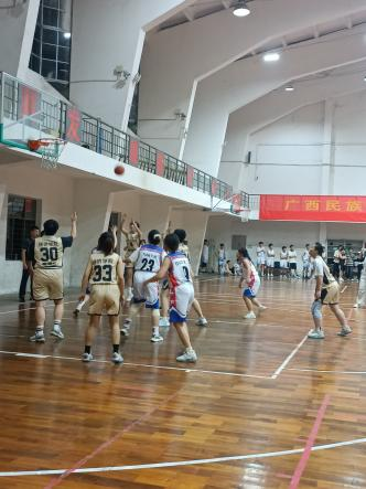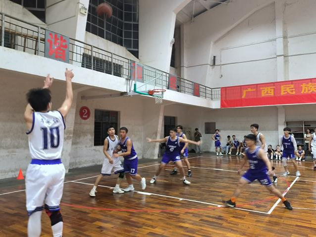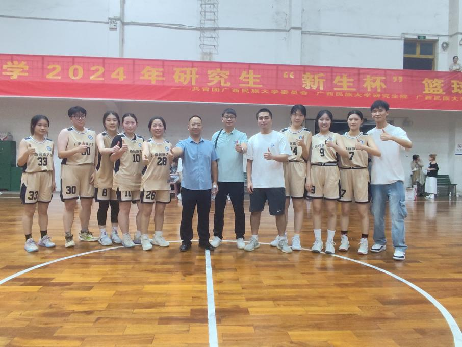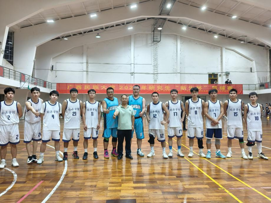 2024年10月9日晚,广西民族大学研究生“新生杯”篮球赛在相思湖校区大丰球馆隆重开幕,经济学院派出队伍参赛。
