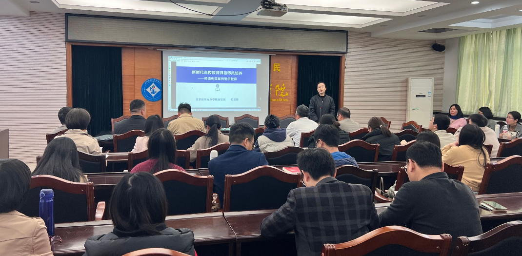 3月18日下午,fun88乐天使在格物楼206会议室召开师德师风专项培训会,学院全体教职工参会。