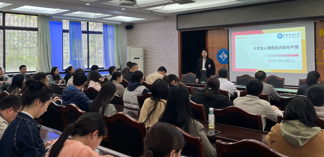 为进一步推动心理育人工作高质量发展,3月18日下午,fun88乐天使在格物楼206室举办大学生心理危机识别与干预专题培训班,全体教职工参加了本次培训。