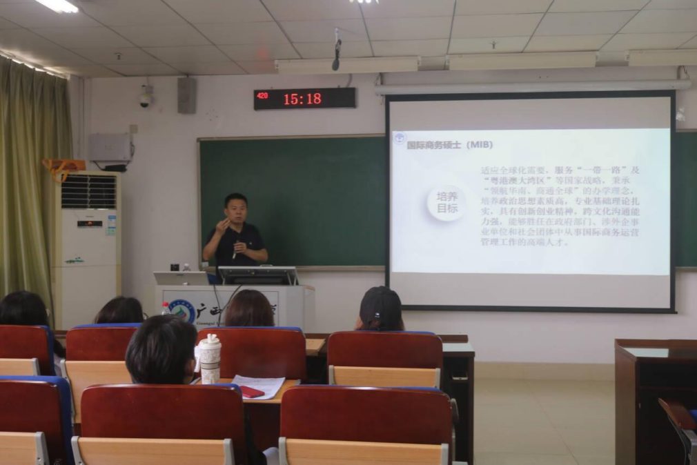 会上,主讲人详细介绍了广东外语外贸大学及MIB项目的情况。在互动环节中,留学生踊跃提问,现场氛围热烈。