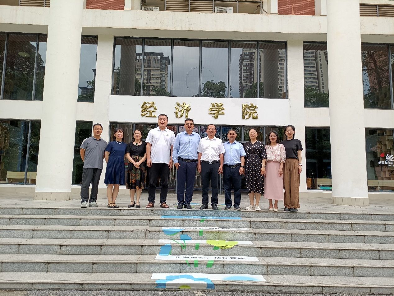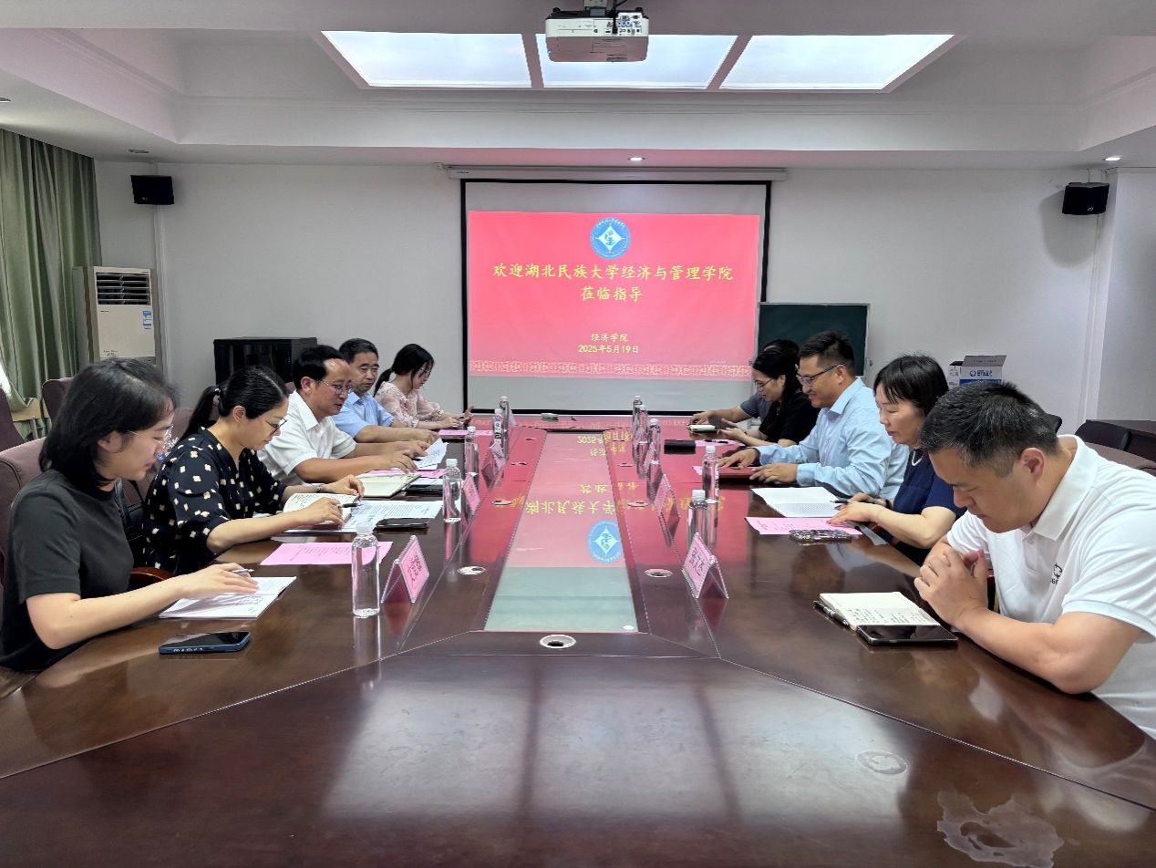 5月19日下午,湖北民族大学经济与管理学院冉瑞恩副院长一行到访fun88乐天使。交流会在学院格物楼611会议室举行,会议由高斌副院长主持,国际经济与贸易系主任廖万红、金融系主任李春华、数字经济系主任张文杰和经济系代表樊广义老师共同出席。