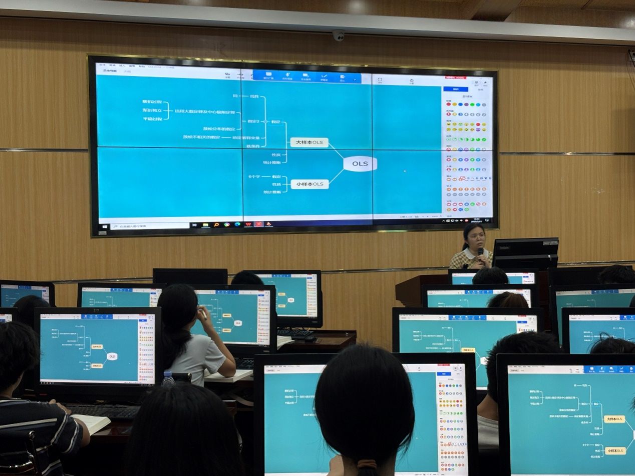 课堂上,褚冬琳老师结合理论推导与实际案例,深入浅出地讲解了在大样本条件下OLS(普通最小二乘法)的渐近性质及其应用。她通过生动的经济数据分析和浅明的案例应用介绍,帮助学生理解大样本理论的核心思想,并借助Stata软件进行实证演示,增强学生的实践能力。