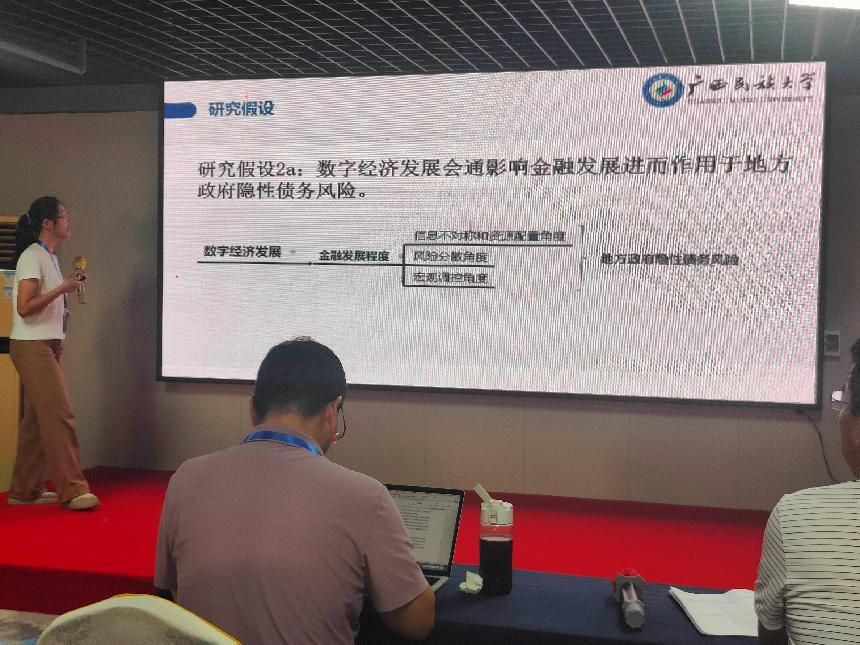 在第六场分组报告中,金融硕士研究生李惠芳就《数字经济发展对地方政府隐性债务风险的影响是非线性的吗?》主题进行汇报,探讨了两者之间的非线性关系及影响机制。