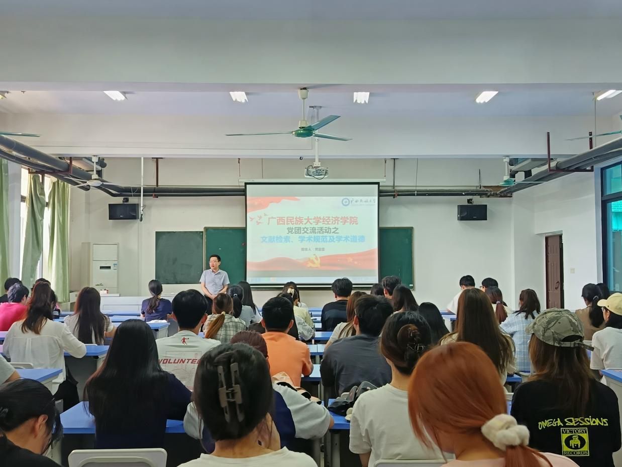 税收学、经济学学生党支部于4月15日在格物楼502开展文献检索、学术规范及学术道德党团交流党日活动,邀请经济学院经济学教师党支部黄显雷老师主讲。
