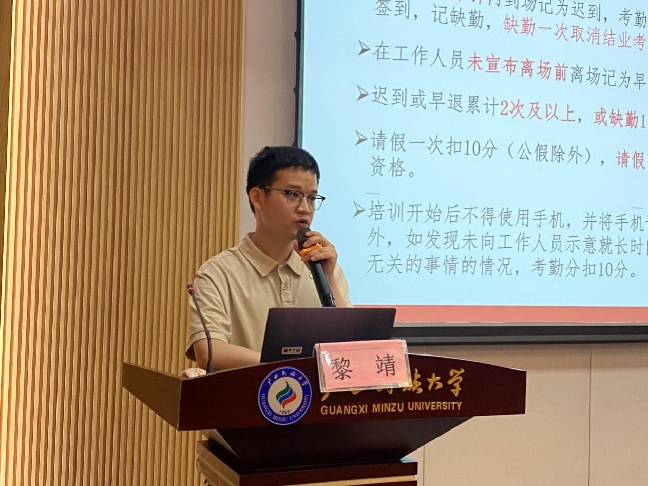 6月3日,经济学院党委副书记范潇潇、党建工作站站长黎靖以及培训班全体学员参加开班仪式。仪式上,范潇潇围绕“党的纪律建设”作专题报告,结合党史和现实案例,阐述“党纪严于国法”的核心要求,强调全体学员需提升纪律意识,严守政治规矩。随后,黎靖讲解培训班学习要求,呼吁学员们珍惜此次培训机会,在思想和行动上向党组织靠拢。