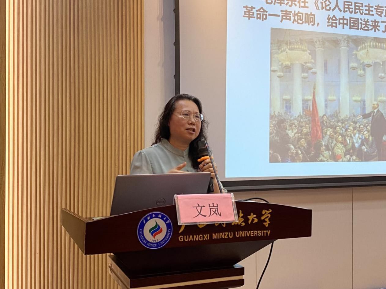 学院离退休教工党支部书记、关心下一代工作委员会主任文岚进行专题授课