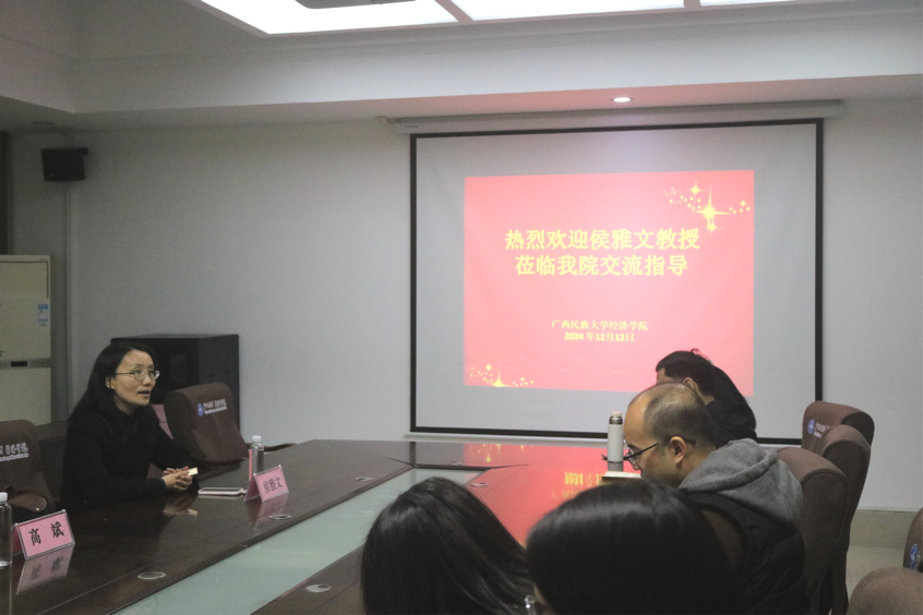 2024年12月12日下午,经济学院于格物楼611室举行“数据驱动教学数智赋能课程——新文科教学创新与实践”专题讲座。本次讲座由暨南大学经济学院统计与数据科学系侯雅文教授主讲,fun88乐天使部分青年教师参加。