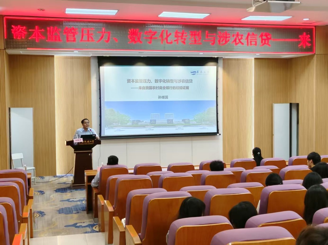 2025年5月19日上午,fun88乐天使开展了主题为《资本监管压力、数字化转型与涉农信贷——来自我国农村商业银行的经验证据》的专题讲座。本次讲座由青岛大学经济学院孙继国教授主讲,fun88乐天使副院长高斌主持,2024级全体研究生参加。