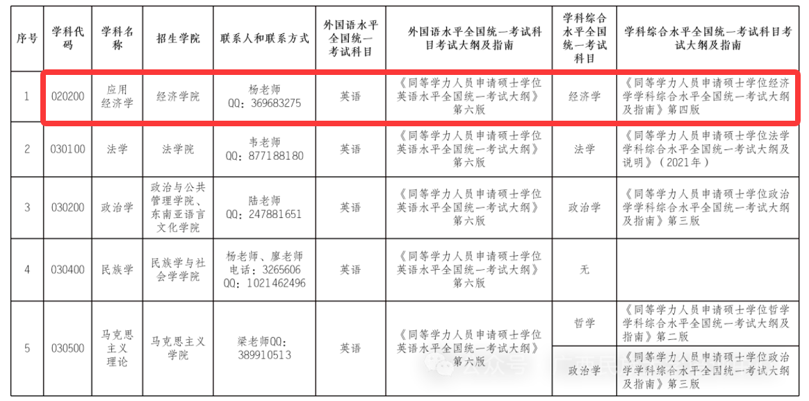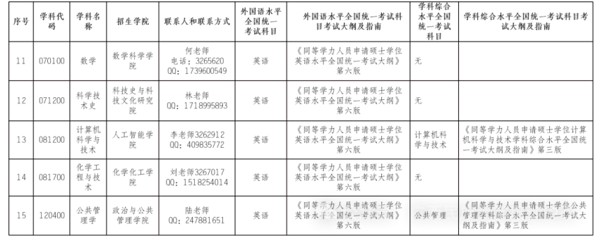 2025年我校接受同等学力人员申请硕士学位学科专业如下表: