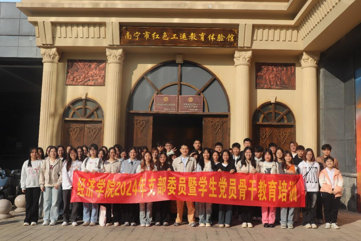 2024年11月23日,经济学院党建工作站组织各党支部委员、学生党员骨干团队代表前往南宁市工人文化宫开展2024年支部委员暨学生党员骨干教育培训活动。